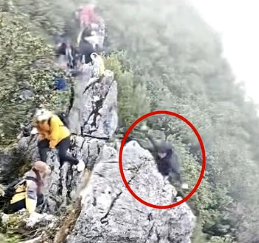 ЧП произошло в популярном туристическом месте - на горе Хуайин в китайской провинции Сычуань. Очевидцы засняли момент падения мужчины на видео.