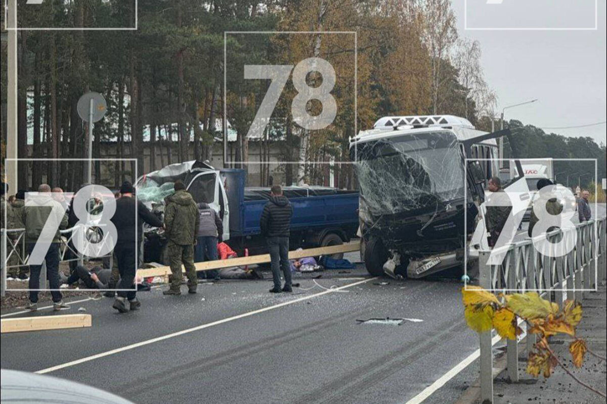 "Очевидцы сообщают о восьми пострадавших в ДТП в Ломоносовском районе. Автобус столкнулся с грузовиком. Три пассажира вылетели из салона в момент аварии. Они находятся в тяжелом состоянии", - говорится в публикации.