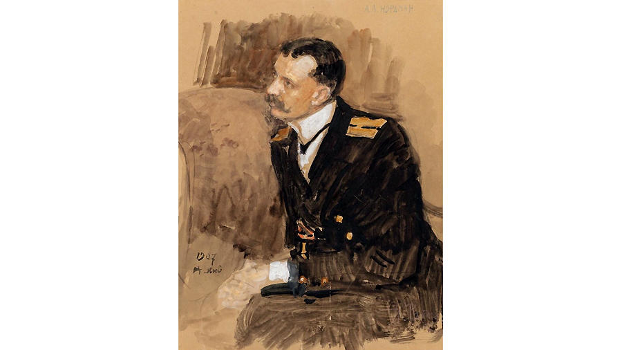 — Есть ценность материальная, а есть... иная. Мне в этой экспозиции дороги многие вещи. Например — рисунки кадета Василия Биттенбиндера 1905–1906 годов, когда ему было 14–15 лет. По окончании Корпуса этот офицер служил на Балтийском флоте, воевал в Первую мировую, а погиб, сражаясь в рядах армии Юденича... Имеются вещи дорогие и в прямом, и в переносном смысле — к примеру, искусно вырезанный из бумаги и украшенный пышным орнаментом силуэт корабля, выполненный неизвестным западноевропейским мастером в конце XVII века. Скорее всего, эта работа была сделана для Петра I, заказана им самим или его приближенными во время Великого посольства. Экспонируется здесь и портрет старшего лейтенанта Нордмана, написанный Ильей Репиным. На выставке представлена также замечательная акварель нашего выпускника Василия Игнациуса, в 1893–1894 годы командовавшего миноносцем «Взрыв». Василий Васильевич изобразил одного из своих матросов. В 1905-м Игнациус, будучи командиром флагманского эскадренного броненосца «Князь Суворов», вместе с кораблем погиб в Цусимском сражении.