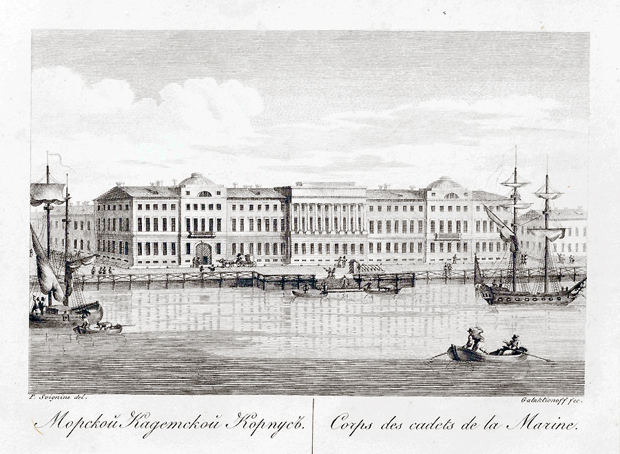 Вначале оно называлось Школой математических и навигацких наук и размещалось в московской Сухаревой башне, затем переехало в новую столицу и стало Морским кадетским корпусом, а при советской власти действовало в Петрограде-Ленинграде как Высшее военно-морское училище им. М. В. Фрунзе.
