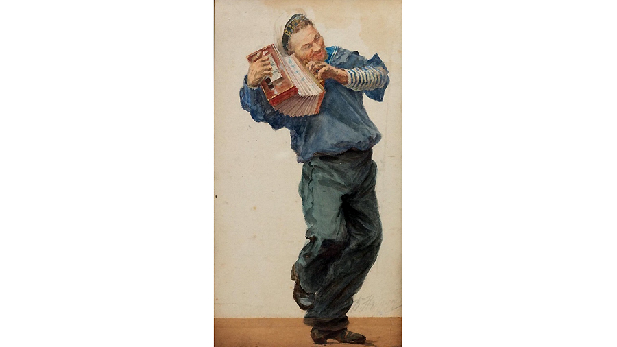 Игнациус В.В. (1854–1905). «Матрос миноносца «Взрыв» с гармошкой», 1893. Бумага на картоне, акварель