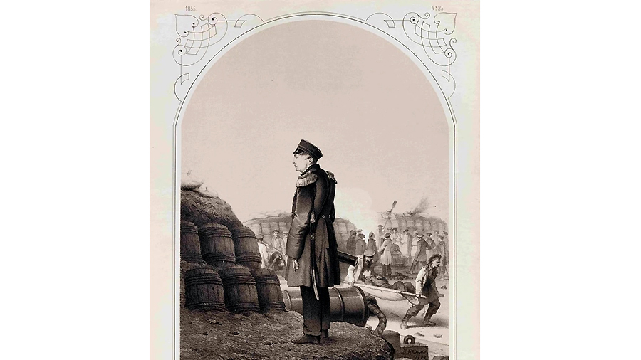 Адмирал Павел Степанович Нахимов, помощник начальника Севастопольского гарнизона, умерший от ран, полученных при защите Севастополя 30 июня 1855 года. 1855 год. Литография