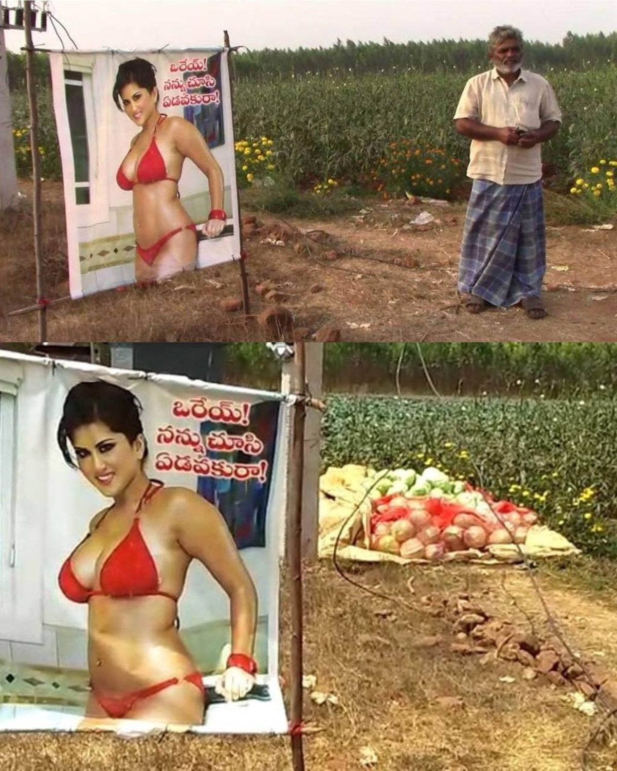 В Индии один предприимчивый фермер нашел весьма оригинальный способ уберечь свой урожай от незваных гостей. Вместо традиционных пугал или сторожевых собак, он решил прибегнуть к помощи... фотографий известной порно-актрисы Сани Леоне в бикини. Эти снимки он развесил по всему полю ...