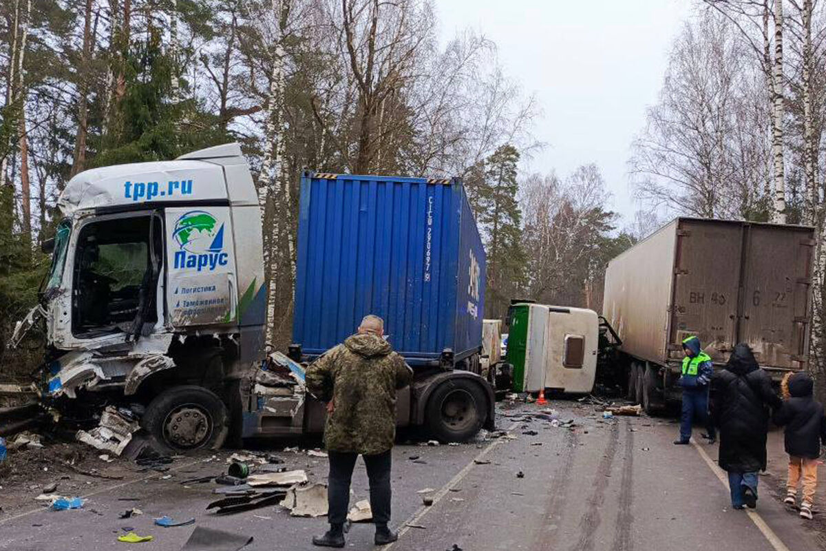 Судя по видео, все попавшие в аварию автомобили получили серьезные повреждения. У одного из грузовиков вырвало газовый баллон.