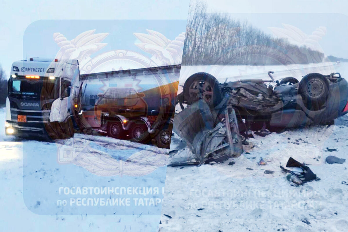 "В Алькеевском районе 24-летний водитель "Лады Гранта", предварительно, пошел на обгон и столкнулся со встречной фурой Scania. Удар был такой силы, что легковушка превратилась в груду металла", - говорится в публикации.