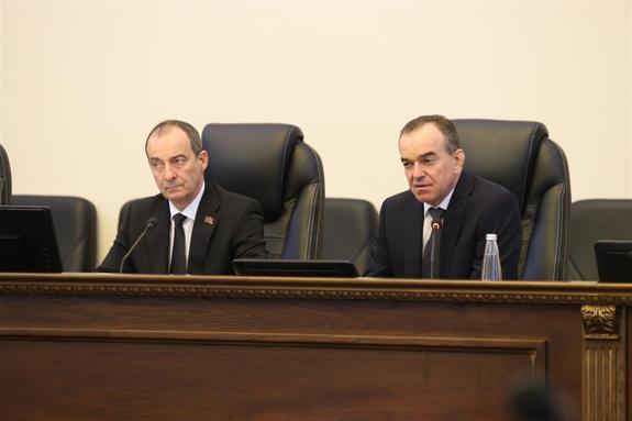 В Законодательном Собрании Краснодарского края под председательством руководителя краевого парламента Юрия Бурлачко прошло очередное, семьдесят шестое пленарное заседание. В сессии приняли участие Губернатор Кубани Вениамин Кондратьев, исполняющий обязанности прокурора региона Александр Трухин, начальник Управления Министерства юстиции России по краю Игорь Бабаев, председатель Контрольно-счетной палаты региона Сергей Усенко.Депутаты рассмотрели более тридцати вопросов.