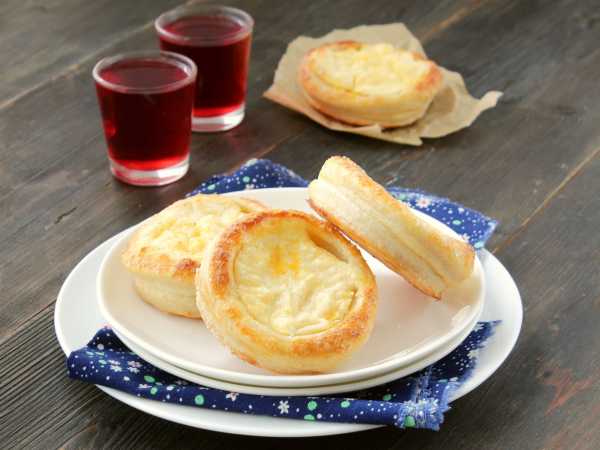 Имея в закромах тесто-полуфабрикат, испечь слоеные ватрушки не составляет труда. Без длительного хлопотного замеса существенно сокращается время готовки, и менее чем за час к очередному чаепитию запросто можно подать вкусную домашнюю выпечку.