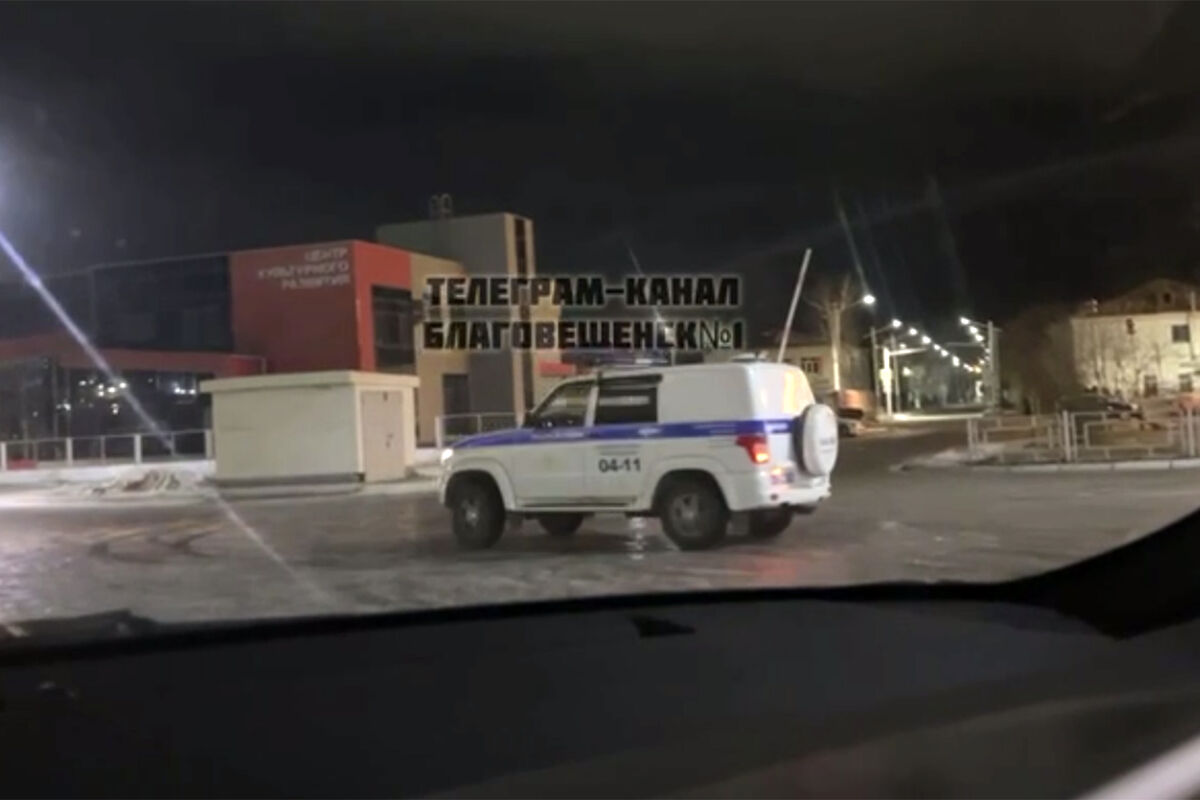 В городе Белогорск Амурской области водитель снял на видео дрифтующий полицейский автомобиль. Кадры опубликовал Telegram-канал "Благовещенск №1".