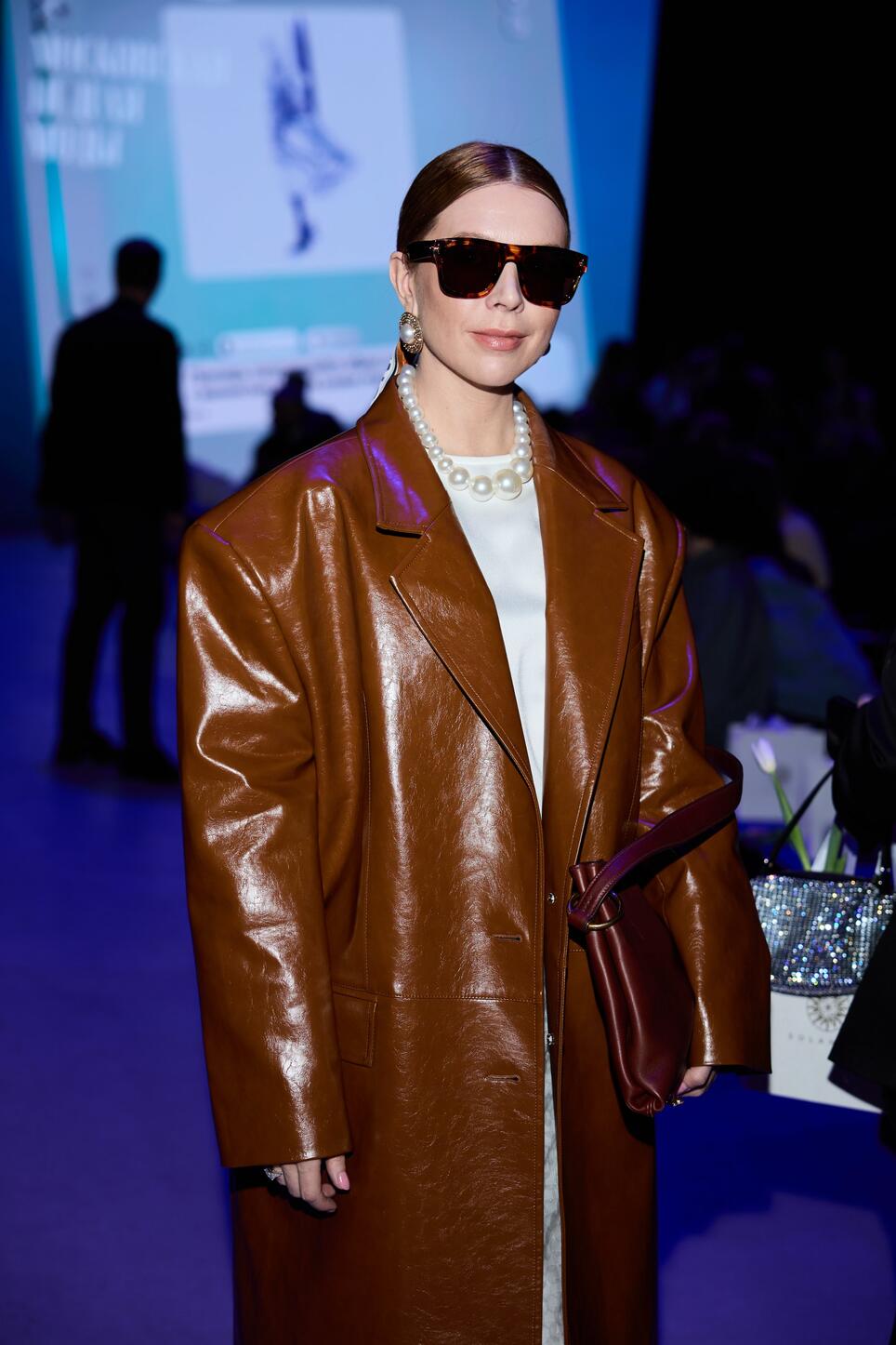 Певица появилась на мероприятии в эффектном кожаном плаще-оверсайз и с первых минут привлекла внимание не только образом, но и откровениями.