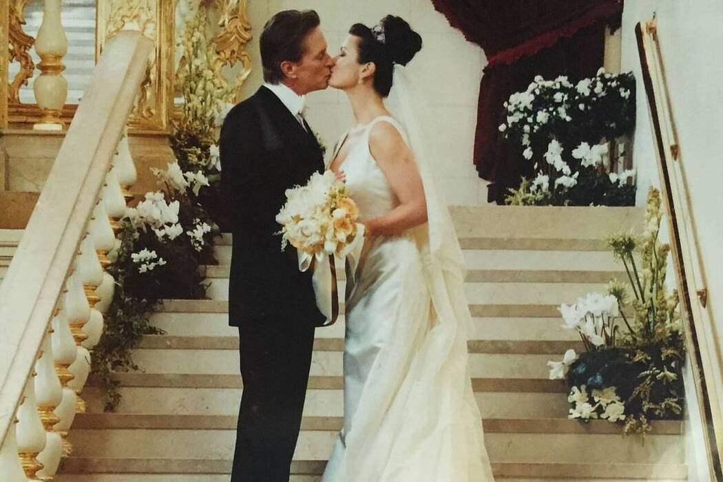Один из самых ярких моментов, запечатленных на фото, демонстрирует страстный поцелуй влюбленных прямо во время свадебной церемонии. 54-летняя Кэтрин Зета-Джонс, которая на тот момент была невестой, позировала в роскошном белом макси-платье с длинным шлейфом и интригующим декольте. Ее образ дополняла фата, закрепленная на элегантном пучке. 79-летний Майкл Дуглас, ее избранник, предстал в классическом черном костюме. Разница в возрасте пары, составляющая 25 лет, никогда не мешала их искренним чувствам.