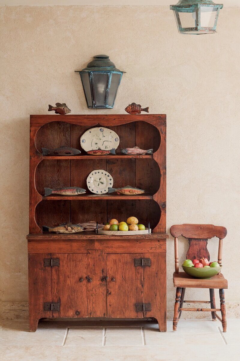 Полы во всём доме выполнены из натурального камня или дерева, причём их поверхность специально оставлена слегка неровной. Здесь нет места идеальной геометрии или безупречной гладкости; создаётся впечатление, будто время бережно поработало над каждым элементом, придав ему благородную потёртость. Этот эффект был задуман специально, чтобы дом не выглядел «новоделом» и излучал дух старины.