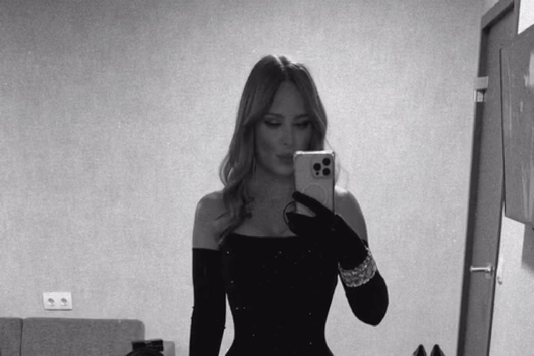 На видео, которое артистка обнародовала в своих социальных сетях, звезда предстала в черном сияющем наряде. Образ дополнили длинные перчатки в тон, массивные браслеты, сверкающие серьги со стразами и пикантные сетчатые колготки. Ее волосы были уложены в мягкие локоны, а вечерний макияж подчеркивал выразительные глаза.