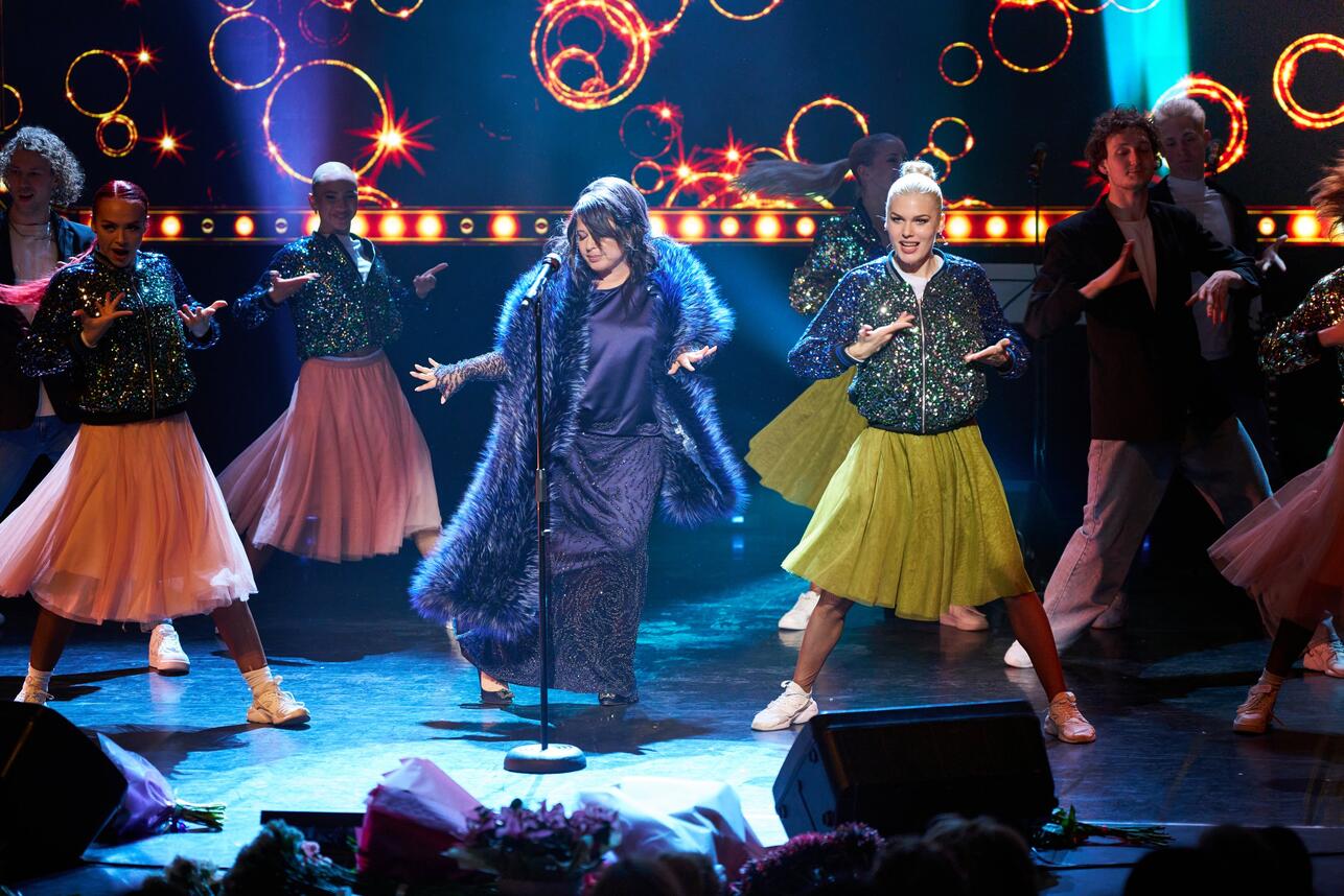 Глеб Матвейчук и Инна Рудник Сергей ПечораПриятным сюрпризом для зрителей стал блок из двух песен в исполнении Инны Рудник из кинофильма «Ирония судьбы, или С легким паром!» Эльдара Рязанова: «Мне нравится, что вы больны не мной» и «На Тихорецкую». А помог артистке в этом гитарист Сергей Давыденко. Аранжировка любимых «Вагончиков» в стиле фламенко удивила, но не разочаровала. На этой песне на сцене появились танцоры из балета TODES Аллы Духовой. «Вагончики» «на всех парах привезли» зрителей к финальному блоку концерта. Кульминация была такой мажорной, позитивной и темпераментной, что ни артисты, ни зрители не сдерживали своих эмоций и ног. Танцевать и петь хотелось всем! Финальные песни исполнялись со зрителями хором — артисты зажигали на сцене, а публика ликовала на местах. Ураганным каскадом одна за другой пронеслись «Эти глаза напротив», «Счастье вдруг» в исполнении Глеба Матвейчука и «Три белых коня» — в дуэте.