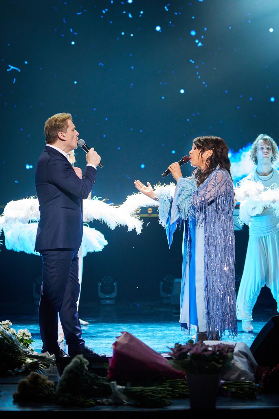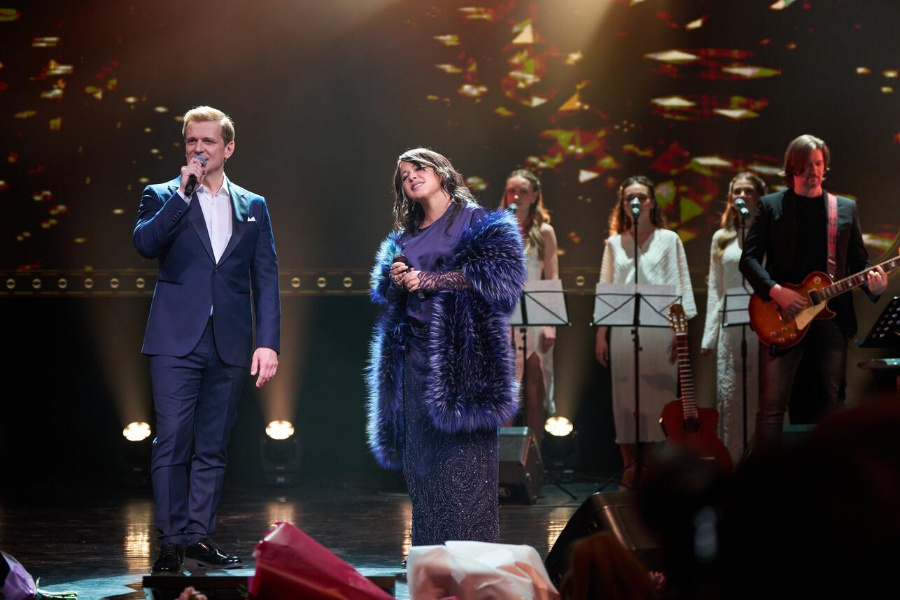 Глеб Матвейчук и Инна Рудник Сергей ПечораВторое отделение открылось дуэтом артистов на песню «Любовь настала» Раймонда Паулса и Роберта Рождественского и романсом «Как упоительны в России вечера» Александра Добронравова и Виктора Пеленягрэ.