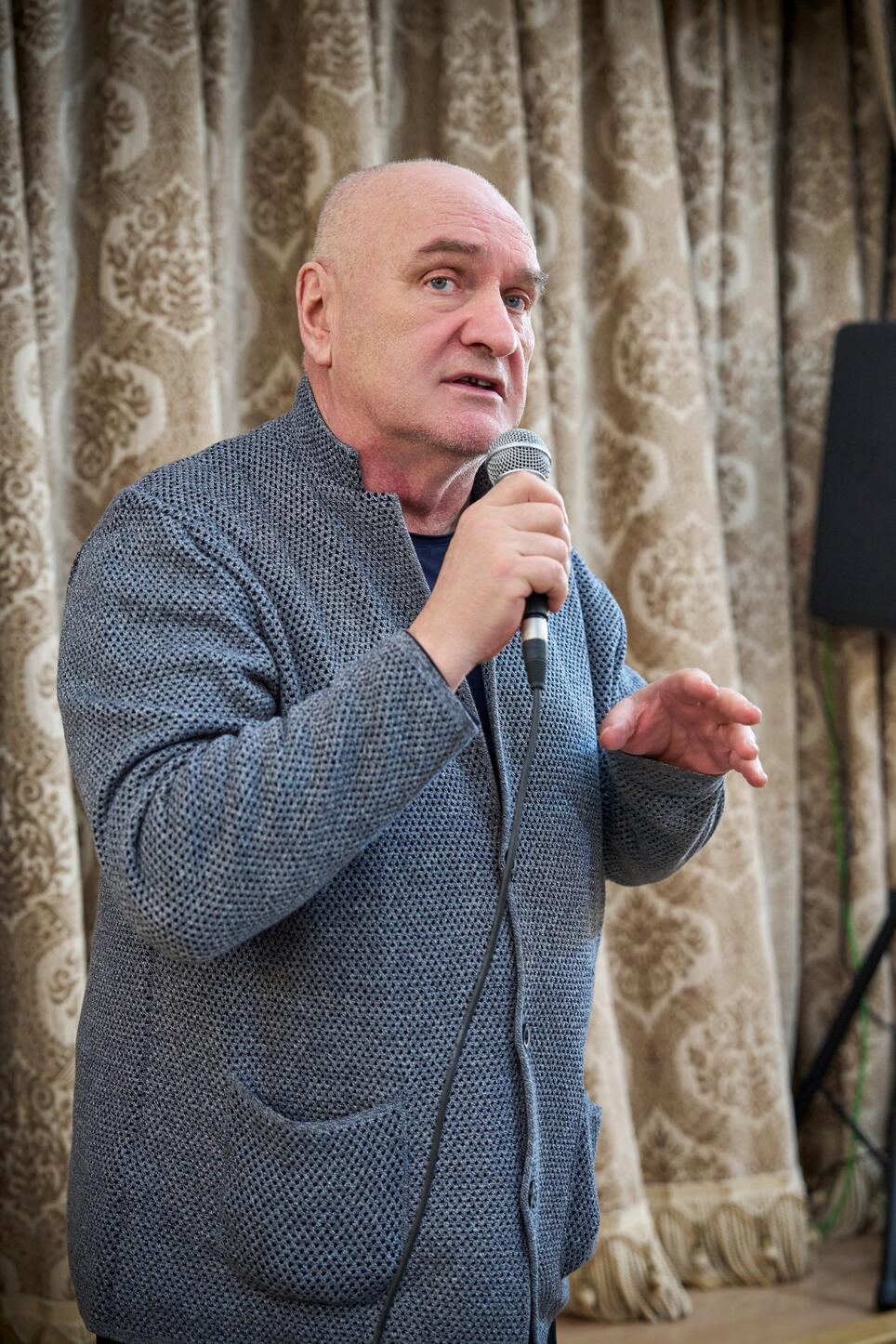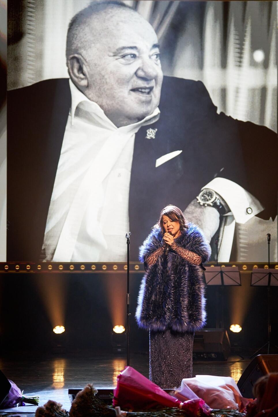 Инна Рудник на фоне портрета отца Ефима Рудника Сергей ПечораПосетил концерт и народный артист России Александр Балуев, который играет главную роль в спектакле Глеба Матвейчука «Ревизор» Театра Российской армии.