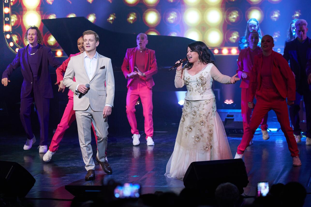 Глеб Матвейчук и Инна Рудник Сергей ПечораСвой концерт артисты начали с дуэта «Любите, пока любится», задав мажорный тон всей программе. В том же настроении прошла и вторая песня в исполнении Глеба Матвейчука «Ах, как хочется влюбиться». Затем прозвучала контрастная композиция — «Айсберг» от Инны Рудник.