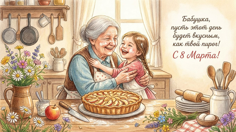 Бабушка, пусть этот день будет вкусным, как твой пирог! С 8 Марта!