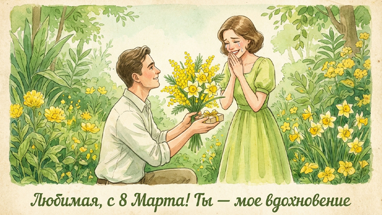 «Моя любимая, с 8 Марта! Ты — мое счастье и вдохновение. Пусть каждый день будет светлым и радостным!»