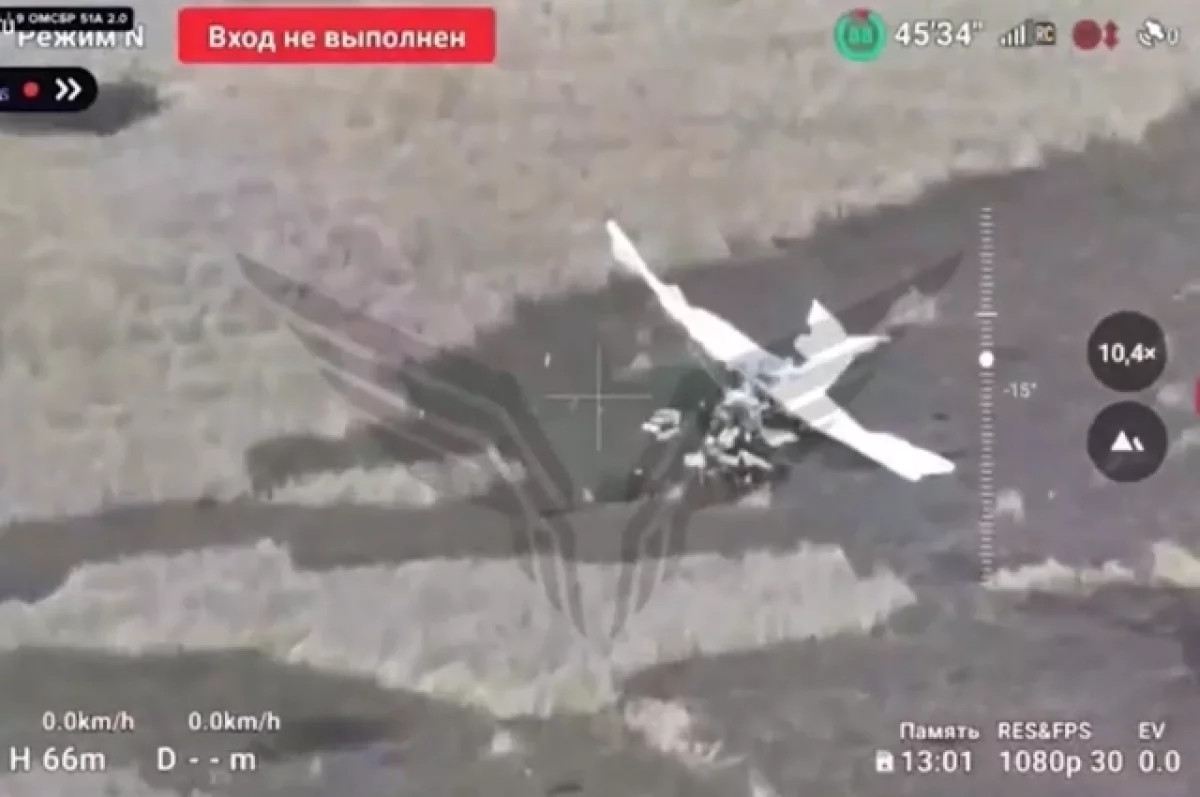 Минобороны России обнародовало видео, на котором запечатлена ликвидация в зоне СВО украинского беспилотника-«камикадзе», сделанного из легкомоторного самолета.