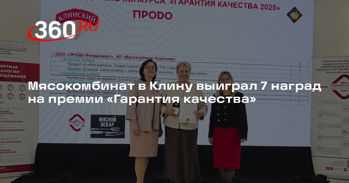 Клинский мясокомбинат, входящий в агропромышленную группу «Продо» получил семь наград на премии «Гарантия качества». Предприятие выиграло четыре золотые и три серебряные медали за свою продукцию, в том числе за колбасные изделия из детской серии и товары под брендами «Клинский» и «Черный Кабан». Как рассказали в региональном Минсельхозпроде, медалями и дипломами отметили 17 товаров предприятия. Конкурс проводится с 2018 года, его основал федеральный научный центр пищевых систем имени Горбатова. Он направлен на оценку качества и безопасности продуктов. В конкурсе участвуют фермеры, ритейлеры, предприятия общественного питания. В состав жюри входят 80 экспертов, которые оценивают органолептику продукта, проверяют маркировку и проводят лабораторные исследования. В конкурсе участвовали 140 компаний из 42 регионов. Участники представили более 1,1 тысячи образцов продукции в 15 категориях.
