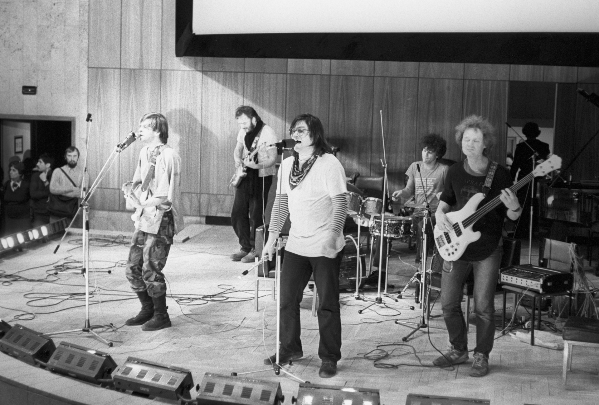 Телемост «Москва-Ленинград». Выступление советской рок-группы «Зоопарк» во время съемок передачи «Рок-перекресток». 1987 год Михаил Макаренко— Где официально поселился Ленинградский рок-клуб?