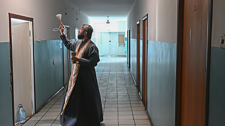 Священник освящает помещение. Фото: © РИА Новости