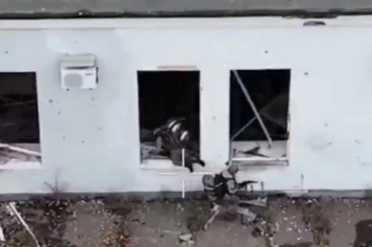 На видео бойцы, несущие большой объем груза, не спеша забираются в здание депо через окна. Судя по всему, украинские боевики были ранее выбиты из депо.