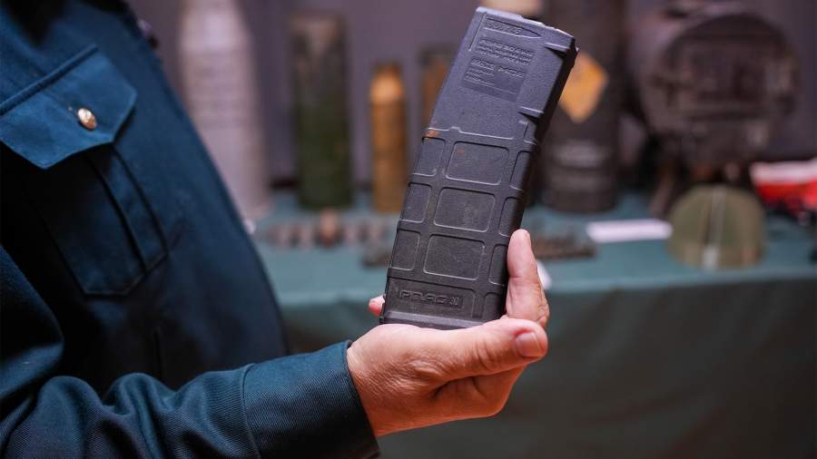 В первую очередь обращает на себя внимание интернациональная составляющая трофеев. Магазины под патрон 5.56 НАТО, произведенные в США компанией Magpul,— один из лучших образцов рожков, подходящий ко всем стандартным автоматам и штурмовым винтовкам североатлантического альянса — от М-16 до hk-416, изготавливают их в штате Колорадо: украинская армия вследствие постепенного исчерпания советских образцов оружия после 2022 года переходит на калибр 5,56. Рядом — летние хаки-кепки с шевроном, объединяющим два флага — знакомый жовто-блакитный и желто-сине-красный колумбийский: жители этой южноамериканской страны входят в лидеры по числу наемников в разных горячих точках мира, в том числе на Украине. Последний скандальный пример — осуждение 6 ноября в ДНР наемника из Колумбии и приговор к 13 годам строгого режима.