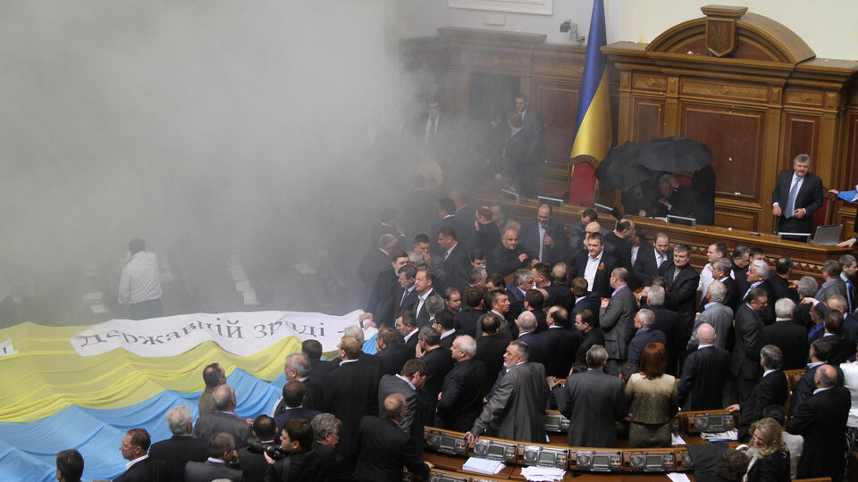 Четвертое место у Украины. В Верховной раде Украины депутаты не трутся, там происходят массовые побоища. Самая жесткая драка произошла 27 апреля 2010 года. Тогда с применением дымовых шашек дралась вся Рада, десятки депутатов получили ушибы и переломы.