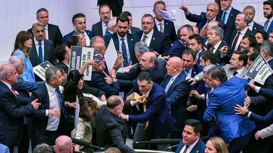 Турки мягкими кишками не кидаются, а бьют коллег острыми карандашами как зоновскими заточками. В августе 2024 года несколько законодателей увезли на скорой с колотыми ранениями.