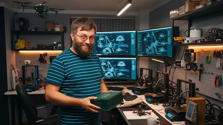 Когда началась СВО, я сперва просто сидел и переживал. Но потом ко мне обратились за помощью люди с фронта – им были нужны хорошие миноискатели. А увидев в моей мастерской 3D-принтер, попросили попечатать на нем хвостовики для ВОГ-17 (гранаты для автоматного подствольника), чтобы их можно было сбрасывать с БПЛА. Ну и пошло-поехало. Я начал печатать всякие другие полезные штуки для наших военных, ремонтировать дроны, разрабатывать глушилки для GPS. Так на фронтах появились мои первые "железки".