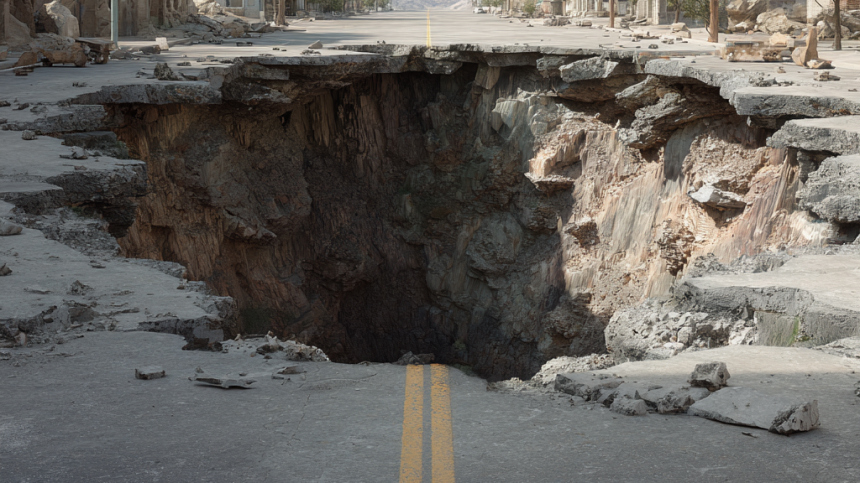 Инцидент случился на территории строящегося объекта, который еще не успели официально сдать в эксплуатацию. Очевидцы зафиксировали на видео, как огромный пласт асфальта стремительно погружается вниз, формируя глубокую впадину. В зону бедствия также попала временная техническая постройка, которая буквально рухнула в образовавшуюся яму на глазах у напуганных очевидцев.