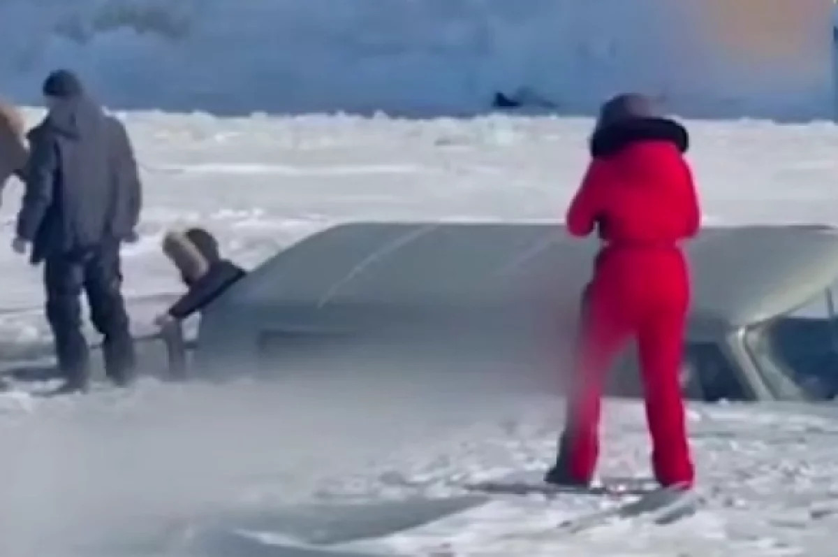 В Сети опубликовали видеозапись, на которой запечатлён момент погружения в воду автомобиля с китайскими туристами, который провалился под лёд возле мыса Хобой на озере Байкал.