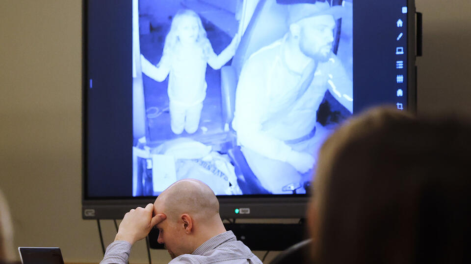 Родители девочки Мейтлин Гэнди и Джейкоб Стрэнд не нашли в себе сил смотреть страшные кадры и покинули помещение.