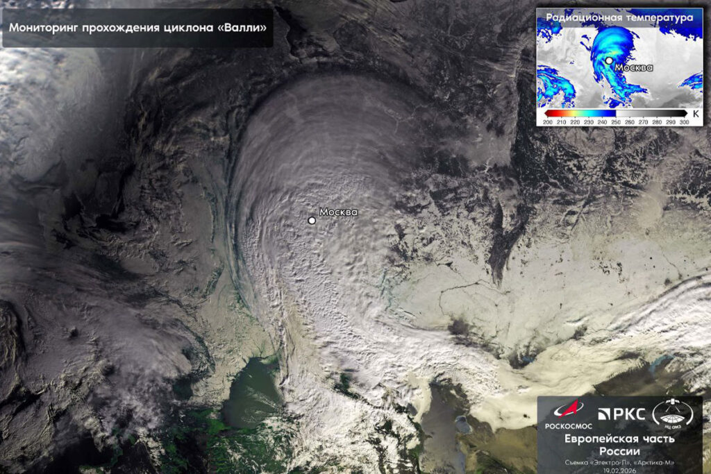 фото: t.me/roscosmos_gkРоскосмос показал спутниковый снимок мощного снежного циклона «Валли», накрывшего Москву. Кадры госкорпорация опубликовала 19 февраля в своем Telegram-канале.