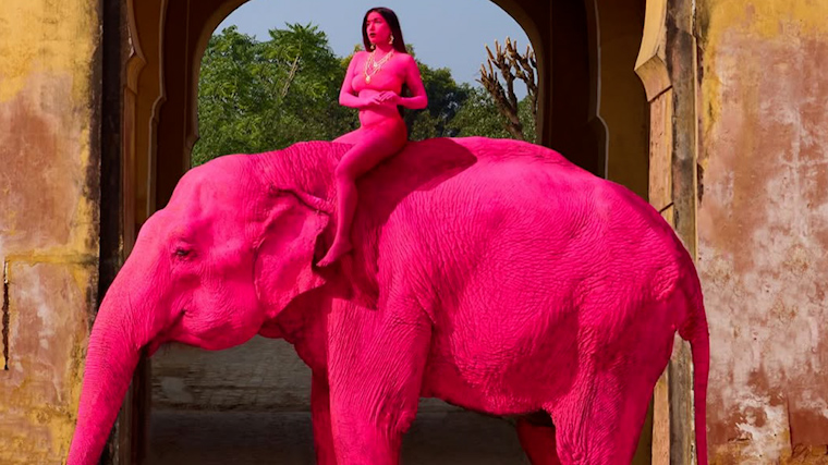 Именно там она решила провести съемку со слонихой Чанчал на фоне храма Ганеши, предварительно окрасив животное в розовый цвет.