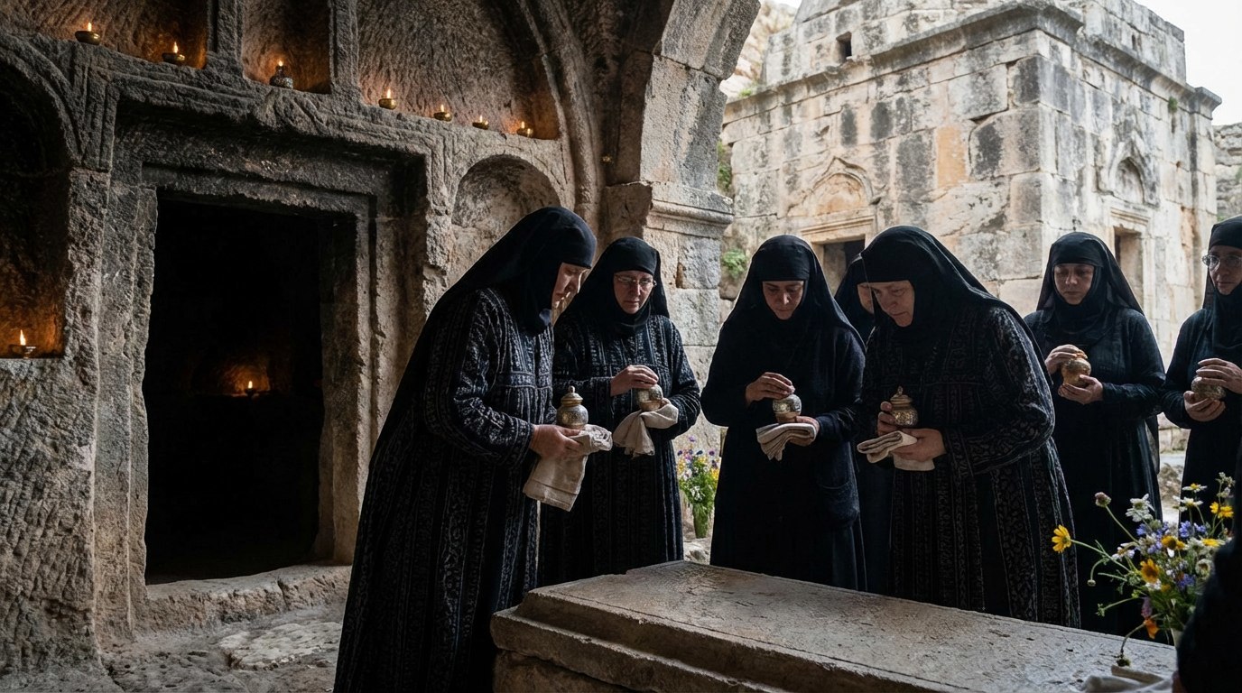 На третий день после распятия и погребения Христа женщины пришли ко гробу (пещере, заваленной камнем), чтобы помазать тело Учителя. Их поступок — это не просто обряд. Они преодолели страх репрессий, насмешек и угрозы смерти там, где апостолы боялись даже выйти на улицу. Именно женщины первыми узнали о Воскресении Христа и рассказали об этом миру.