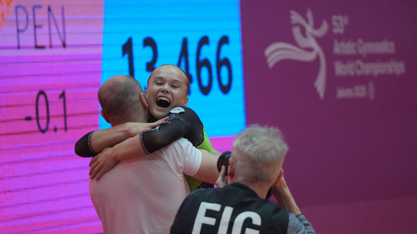 Наставник гордится тем, что, несмотря на ошибку, которую 25-летняя спортсменка допустила во время упражнения на бревнах, Ангелина не сдалась, а собралась и сделала невозможное.