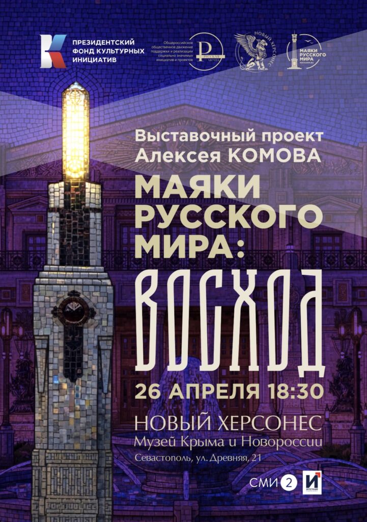 После концерта в Музее Крыма и Новороссии откроется выставка «Маяки Русского Мира: Восход» архитектора Алексея Комова. Проект был представлен в 2023 году на XXXI фестивале «Зодчество» в Москве, где ведущие российские архитекторы-патриоты под руководством основателей проекта Алексея Комова и Юрия Белоусова создали концепции маяков — памятных знаков для городов Новороссии, Донбасса, Крыма и других. Гости выставки увидят проекты и макеты маяков-монументов, тематическую галерею живописи Алексея Комова и масштабное панно «Восход» художника Алексея Гинтовта.