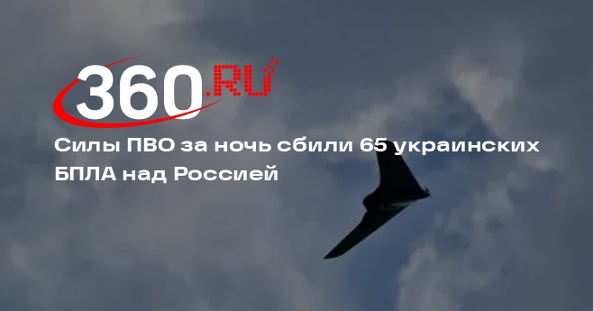 За ночь средства противовоздушной обороны ликвидировали 65 дронов ВСУ над российскими регионами. Об этом сообщила пресс-служба Министерства обороны. «В течение прошедшей ночи дежурными средствами ПВО перехвачены и уничтожены 65 украинских беспилотных летательных аппаратов самолетного типа», — заявили в ведомстве. Больше всего беспилотников сбили над Воронежской областью — 18, также 16 БПЛА ликвидировали над Рязанской, 14 — над Белгородской, семь — над Тульской, четыре — над Брянской, три — над Липецкой, два — над Тамбовской областью и один — над Крымом. Сегодня ночью Telegram-канал Shot сообщил, что в небе над Рязанью сбили несколько украинских беспилотников. Местные жители сообщили о громких звуках в районе трех часов ночи. Всего прогремели около десятка мощных хлопков из разных частей города.