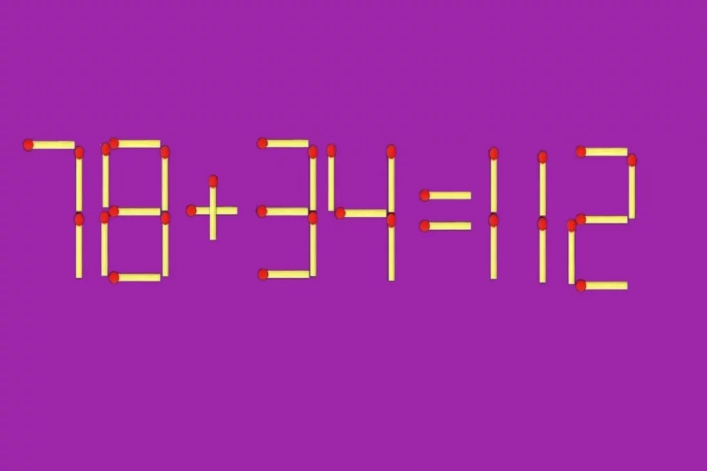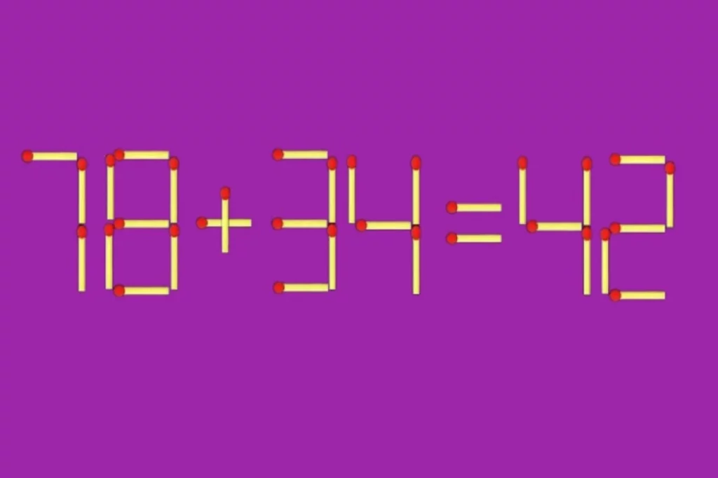 На картинке спичечное равенство: 78 + 34 = 42. Пример явно неправильный. Нужно переместить всего одну деталь, чтобы все сошлось, советует ИА Nord-News.