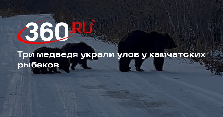 Семья медведей забрала оставленный без присмотра улов рыбаков на Камчатке. Видеозапись с косолапыми грабителями появилась в распоряжении 360.ru. Мужчины выловили рыбу в реке Каюк. Они оставили добычу без присмотра, и к ней пришли три медведя: самка и два медвежонка. Любители рыбалки попытались отпугнуть хищников криками, но из этого ничего не вышло. Автор видео — рыбак Оскар Кравчук — рассказал 360.ru, что медведи съели все 20 средних и крупных гольцов. «Чуть выше по течению, метров 12-15, лежало еще шесть крупных гольчиков — их мы успели забрать», — добавил рыбак. Собеседник 360.ru пояснил, что медведица решила полакомиться чужим уловом и не стала нападать на людей. «Скорее всего, из-за того, что за моей спиной было достаточно рыбы, на ее взгляд, она первым делом предпочла рыбу, а не мясо в куртке и резиновых сапогах», — с иронией отметил он. Ранее белые медведи стали частыми гостями на метеорологической станции, расположенной около мыса Челюскин. Полярники сообщили, что животные приходят ночью в поисках еды.