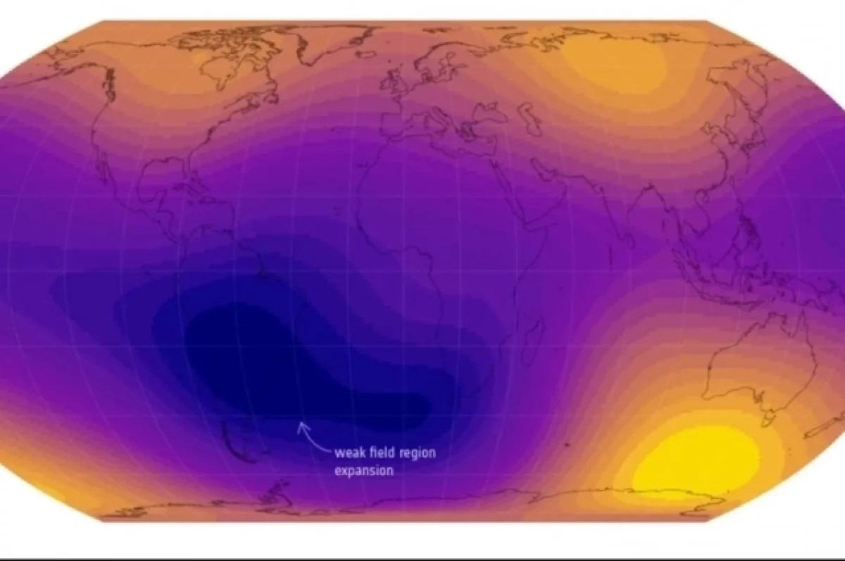 Основное внимание ученых сосредоточено на Южно-Атлантической аномалии — области пониженной напряженности геомагнитного поля над Атлантикой. По данным агентства, с 2014 года эта зона расширилась почти на территорию, сопоставимую с половиной континентальной Европы.