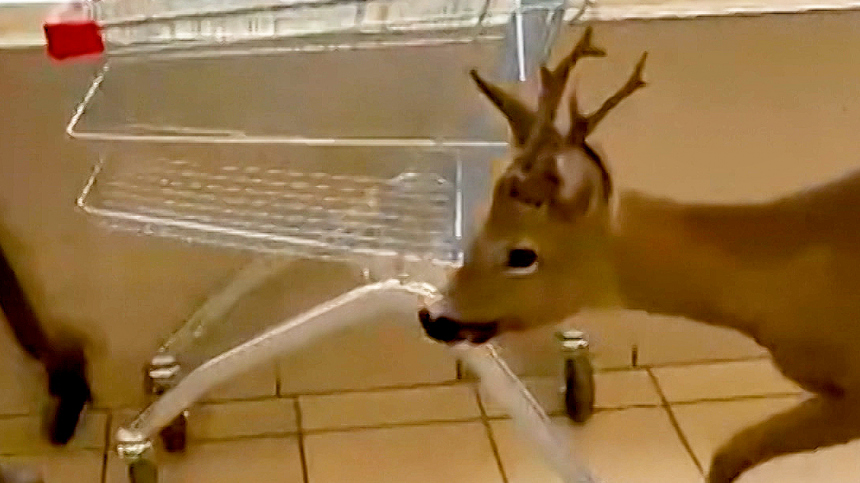 Косуля едва не разгромила супермаркет в Туапсе. Она случайно забежала в помещение и начала носиться между прилавков в поисках выхода.