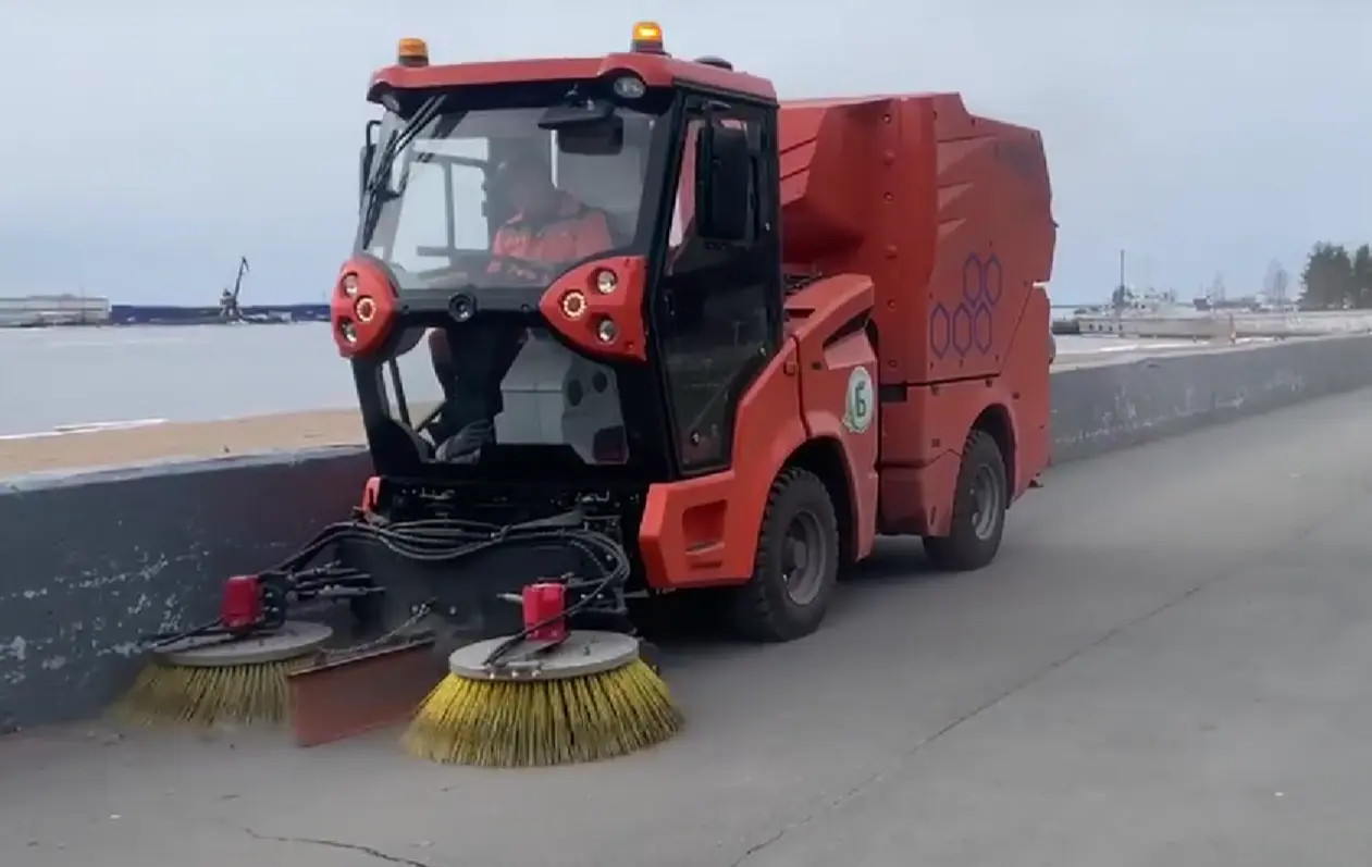 На улицы Архангельска вывели подметально-уборочные машины, которые будут пылесосить пешеходные зоны от прошлогодней пыли.
