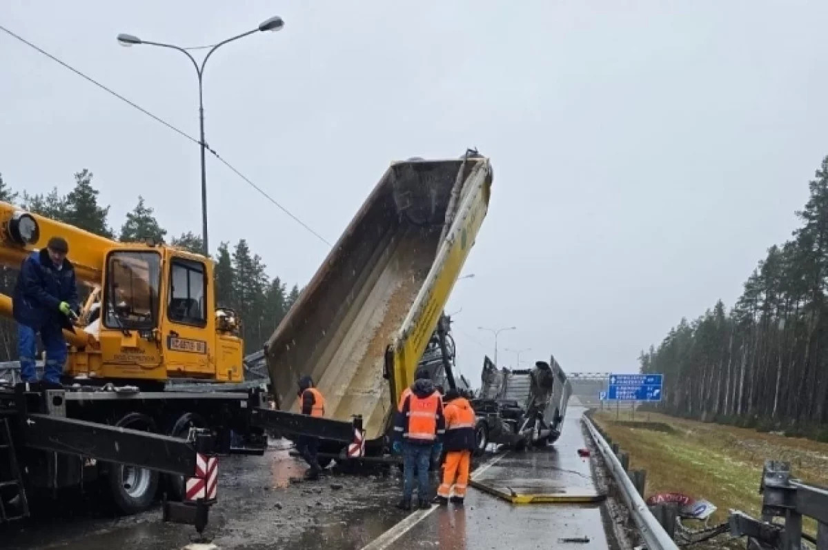 Движение на участке полностью перекрыто в обе стороны. На месте работают специалисты дорожных и аварийных служб. Сроки устранения последствий ДТП пока не уточняются.
