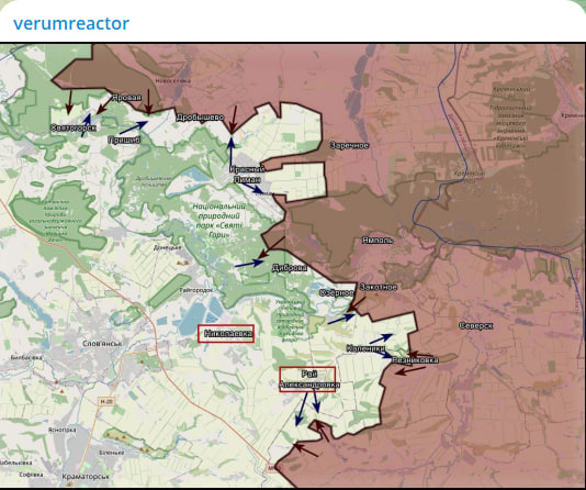 На Славянском направлении ВС России продвинулись в центральной части Резниковки. Также южнее ведётся продвижение в лесу Большой Волчий и в лесу Бабачий. Севернее Резниковки идёт работа по зачистке в ответвлении балки.