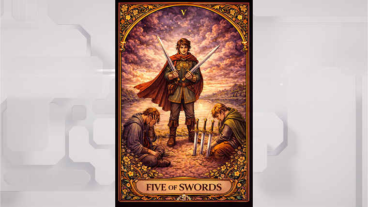 Финансовая сфера может принести напряжение. Пятерка Мечей говорит о ситуациях, где формально можно «выиграть», но цена этого выигрыша окажется слишком высокой. Возможны споры, скрытая конкуренция или чувство, что вас пытаются переиграть.