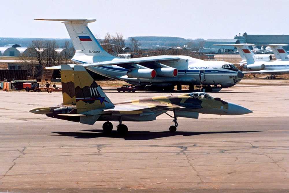 Ровно 30 лет назад, 2 апреля 1996 года, летчик-испытатель Евгений Фролов впервые поднял в небо самолет, который изменил представление о пределах маневренности боевой авиации. Экспериментальный истребитель Су-37 (по кодификации НАТО Flanker-F) не пошел в серию, и все же его короткая и яркая жизнь стала еще одним символом триумфа отечественной конструкторской школы. Сегодня потомки "тридцать седьмого" - Су-30СМ и Су-35 - составляют основу ударной мощи ВКС России. Су-37 создавался не на пустом месте. Его "донором" стал истребитель Су-27М который начали строить еще в конце 1993 года. Единственный экземпляр с бортовым номером "711" должен был стать демонстратором технологий. В планер были заложены серьезные изменения. В отличие от базового Су-27, здесь использовались новые алюминиево-литиевые сплавы, было расширено применение композитов, а крыло получило увеличенную относительную толщину, что позволило разместить больший объем топлива. Однако главным отличием стала силовая установка. Самолет оснастили двумя турбореактивными двухконтурными двигателями АЛ-31ФП с управляемым вектором тяги. И это позволило превратило тяжелый истребитель в грациозную "бабочку", способную кружить в воздухе буквально на месте. Создание поворотного сопла стало настоящим вызовом. Оно могло отклоняться на 15 градусов вверх и вниз, но главной проблемой было уплотнение подвижного стыка: прорыв раскаленных газов неминуемо привел бы к пожару. Отечественным конструкторам удалось с этим справиться. Аэродинамика Су-37 тоже была необычной. К привычным крыльям и хвостовому оперению добавили небольшие передние "крылышки" - переднее горизонтальное оперение. Они помогали самолету уверенно держаться в воздухе на больших углах атаки и при полете на малой высоте. В кабине вместо привычной центральной ручки управления самолетом летчик работал с боковым джойстиком на правой консоли - как на американском F-16. Перед ним были установлены четыре крупноформатных цветных жидкокристаллических многофункциональных индикатора (в то время как на предшественнике Су-27М они были монохромными) и широкоугольный индикатор на лобовом стекле. Мировая премьера Су-37 состоялась в июне 1996 года на авиасалоне в Ле-Бурже. Машина с белым бортовым номером "711" и выставочным "344" прилетела на шестой день салона, вызвав ажиотаж. Многие делегации даже отложили отъезд, чтобы увидеть "русское чудо". Полет Евгения Фролова произвел эффект разорвавшейся бомбы. Зрители и эксперты увидели то, что считалось невозможным для 20-тонной машины: разворот в плоскости симметрии на 360°, получивший название "Чакра Фролова"; "Кобру" с углами атаки 150-180 градусов, когда самолет фактически летит хвостом вперед; "Колокол" и форсированный боевой разворот, занимавший менее 10 секунд. В Ле-Бурже случился курьез: в одном из полетов у самолета не убралось шасси. Но Фролов не прервал демонстрацию - он выполнил "Кобру" с выпущенными стойками и благополучно приземлился. Причиной оказалась ошибочное положение ручки крана аварийного выпуска. Часто высказывалось мнение, что Су-37 стал ответом на демонстрацию в 1995 году германо-американского Х-31А, который поражал публику маневренностью за счет отклоняемых панелей в сопле. Однако создать такой сложный самолет за восемь месяцев невозможно. Отечественный истребитель был не "догоняющим", а лидером, предложив
