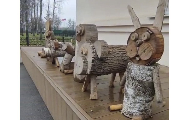 У входа в администрацию "Тульских парков" снова появились "бревновички".